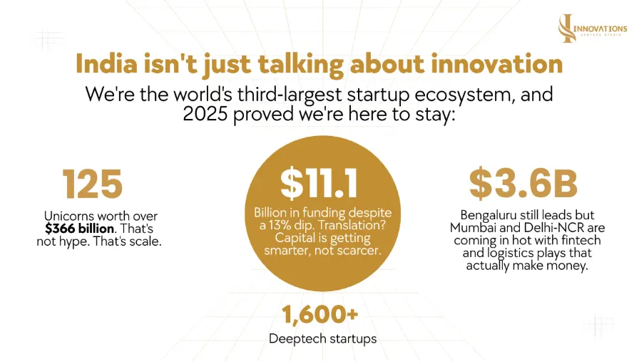 3. Emergence of Tier-2 Innovation Hubs Cities such as Jaipur, Indore, and Kochi are becoming credible build locations, offering cost efficiency, talent stability, and founder ecosystems designed for long-term company creation rather than short-term valuation cycles.